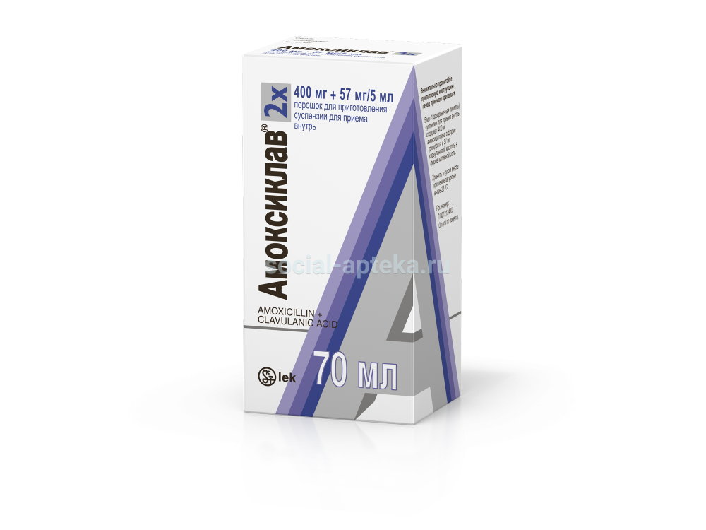 - Форма выпуска: порошок для приготовления суспензии для приема внутрь дозировка 400 мг + 57 мг/5 мл по 17,50 г (70 мл готовой суспензии) во флакон темного стекла.