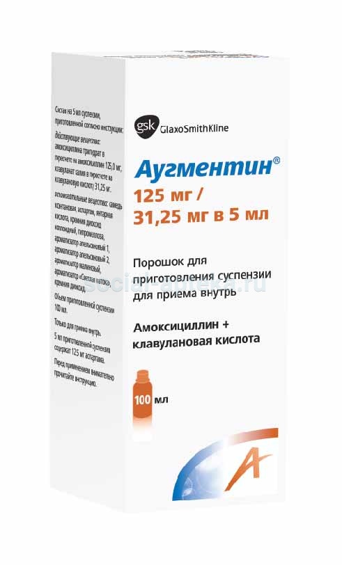 Аугментин - антибактериальное широкого спектра, бактерицидное.ФармакодинамикаАмоксициллин — полусинтетический антибиотик широкого спектра действия, обладающий активностью против многих грамположительных и грамотрицательных микроорганизмов. В то же время, амоксициллин подвержен разрушению бета-лактамазами, и поэтому спектр активности амоксициллина не распространяется на микроорганизмы, которые продуцируют этот фермент.Клавулановая кислота — ингибитор бета-лактамаз, структурно родственный пенициллинам, обладает способностью инактивировать широкий спектр бета-лактамаз, обнаруженных у микроорганизмов, устойчивых к пенициллинам и цефалоспоринам. Клавулановая кислота обладает достаточной эффективностью в отношении плазмидных бета-лактамаз, которые чаще всего обусловливают резистентность бактерий, и менее эффективна в отношении хромосомных бета-лактамаз 1-го типа, которые не ингибируются клавулановой кислотой.Присутствие клавулановой кислоты в препарате Аугментин® защищает амоксициллин от разрушения ферментами — бета-лактамазами, что позволяет расширить антибактериальный спектр амоксициллина.Ниже приведена активность комбинации амоксициллина с клавулановой кислотой in vitro.Бактерии, обычно чувствительные к комбинации амоксициллина с клавулановой кислотойГрамположительные аэробы: Bacillus anthracis, Enterococcus faecalis, Listeria monocytogenes, Nocardia asteroides, Streptococcus spp., в т.ч. Streptococcus pyogenes1,2, Streptococcus agalactiae1,2 (другие бета-гемолитические стрептококки)1,2, Staphylococcus aureus (чувствительный к метициллину)1, Staphylococcus saprophyticus(чувствительный к метициллину), коагулазонегативные стафилококки (чувствительные к метициллину).Грамположительные анаэробы: Clostridium spp., Peptococcus niger, Peptostreptococcus spp., в т.ч.Peptostreptococcus magnus, Peptostreptococcus micros.Грамотрицательные аэробы: Bordetella pertussis, Haemophilus influenzae1, Helicobacter pylori, Moraxella cafarrhalis1, Neisseria gonorrhoeae, Pasteurella multocida, Vibrio cholerae.Грамотрицательные анаэробы: Bacteroides spp., в т.ч. Bacteroides fragilis, Capnocytophaga spp., Eikenella corrodens, Fusobacterium spp., в т.ч. Fusobacterium nucleatum, Porphyromonas spp., Prevotella spp.Прочие: Borrelia burgdorferi, Leptospira icterohaemorrhagiae, Treponema pallidum.Бактерии, для которых вероятна приобретенная резистентность к комбинации амоксициллина с клавулановой кислотойГрамотрицательные аэробы: Escherichia coli1, Klebsiella spp., в т.ч. Klebsiella oxytoca, Klebsiella pneumoniae1, Proteus spp., в т.ч. Proteus mirabilis, Proteus vulgaris, Salmonella spp., Shigella spp.Грамположительные аэробы: Corynebacterium spp., Enterococcus faecium, Streptococcus pneumoniae1,2, стрептококки группы Viridans.Бактерии, обладающие природной устойчивостью к комбинации амоксициллина с клавулановой кислотойГрамотрицательные аэробы: Acinetobacter spp., Citrobacter freundii, Enterobacter spp., Hafnia alvei, Legionella pneumophila, Morganella morganii, Providencia spp., Pseudomonas spp., Serratia spp., Stenotrophomonas maltophilia, Yersinia enterocolitica.Прочие: Chlamydia spp., в т.ч. Chlamydia pneumoniae, Chlamydia psittaci, Coxiella burnetii, Mycoplasma spp.1 Для данных бактерий клиническая эффективность комбинации амоксициллина с клавулановой кислотой была продемонстрирована в клинических исследованиях.2 Штаммы этих видов бактерий не продуцируют бета-лактамазу. Чувствительность при монотерапии амоксициллином позволяет предполагать аналогичную чувствительность к комбинации амоксициллина с клавулановой кислотой.ФармакокинетикаВсасываниеОба действующих вещества препарата Аугментин® — амоксициллин и клавулановая кислота — быстро и полностью всасываются из ЖКТ после перорального приема. Абсорбция действующих веществ препарата Аугментин® оптимальна в случае при