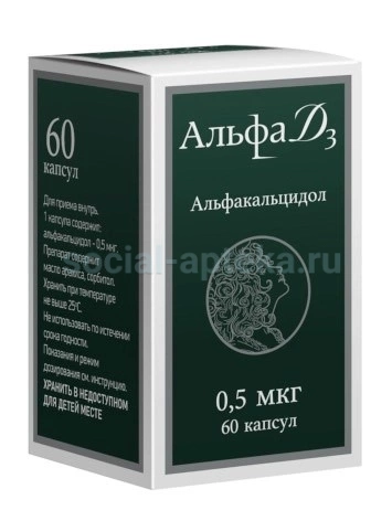 Альфа Д3-Тева - регулирующее кальций-фосфорный обмен.ФармакодинамикаАльфакальцидол (1α-гидроксивитамин D3) быстро превращается в печени в 1,25-дигидроксивитамин D3, активный метаболит витамина D (кальцитриол), который действует как регулятор обмена кальция и фосфора. Повышает абсорбцию кальция и фосфора в кишечнике, увеличивает их реабсорбцию в почках, восстанавливает положительный кальциевый баланс при лечении синдрома кальциевой мальабсорбции и снижает концентрацию в крови паратиреоидного гормона. Воздействуя на обе части процесса костного ремоделирования (резорбцию и синтез), альфакальцидол не только увеличивает минерализацию костной ткани, но и повышает ее упругость за счет стимулирования синтеза белков матрикса кости, костных морфогенетических белков, факторов роста кости, что способствует уменьшению частоты развития переломов.У пациентов пожилого возраста на фоне эндокринно-иммунной дисфункции, в т.ч. дефицита продукции D-гормона (кальцитриола), происходит снижение общей мышечной массы (саркопения) и появление синдрома мышечной слабости (вследствие нарушения нормального функционирования нервно-мышечного аппарата), что сопровождается повышением риска падений и обусловленных этим травм и переломов. В ряде исследований было показано значительное снижение частоты падений пожилых пациентов при применении альфакальцидола. Альфакальцидол стимулирует регенерацию мышечных волокон, что восстанавливает утраченный мышечный тонус.ФармакокинетикаВсасывание. После приема внутрь альфакальцидол быстро всасывается из ЖКТ. Cmax в плазме крови достигается через 8–12 ч после однократного приема альфакальцидола.Метаболизм. Превращение альфакальцидола в кальцитриол (1,25-дигидроксиколекальциферол) происходит в печени путем гидроксилирования по 25 атому углерода, причем процесс гидроксилирования происходит очень быстро (носит субстрат-зависимый характер). В отличие от нативного витамина D альфакальцидол не нуждается в гидроксилировании в почках, поэтому эффективен даже у пациентов со сниженной активностью почечной 1-альфа-гидроксилазы (патология почек, пожилой возраст).