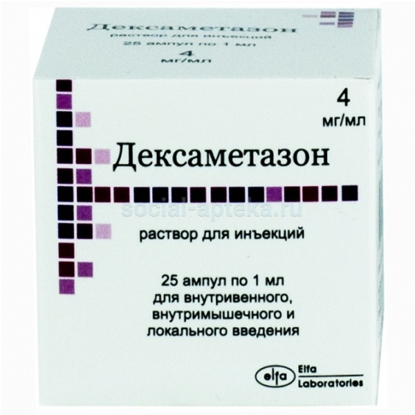 - Действующее вещество: Дексаметазон