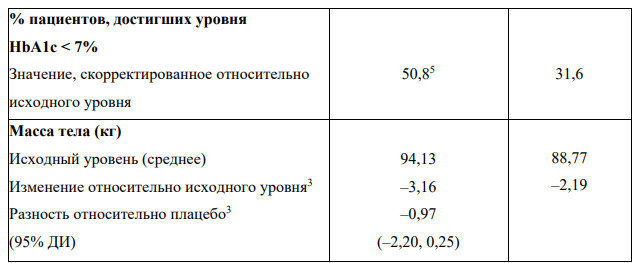 (HbA1c) по сравнению с приемом плацебо (таблица 1).