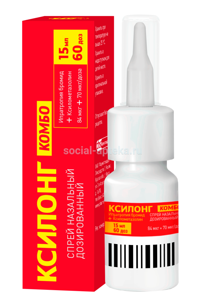 Ксилонг Комбо спр назал 0,084мг+0,07мг доза 15мл (Фармстандарт) наличие в аптеках в Краснодаре