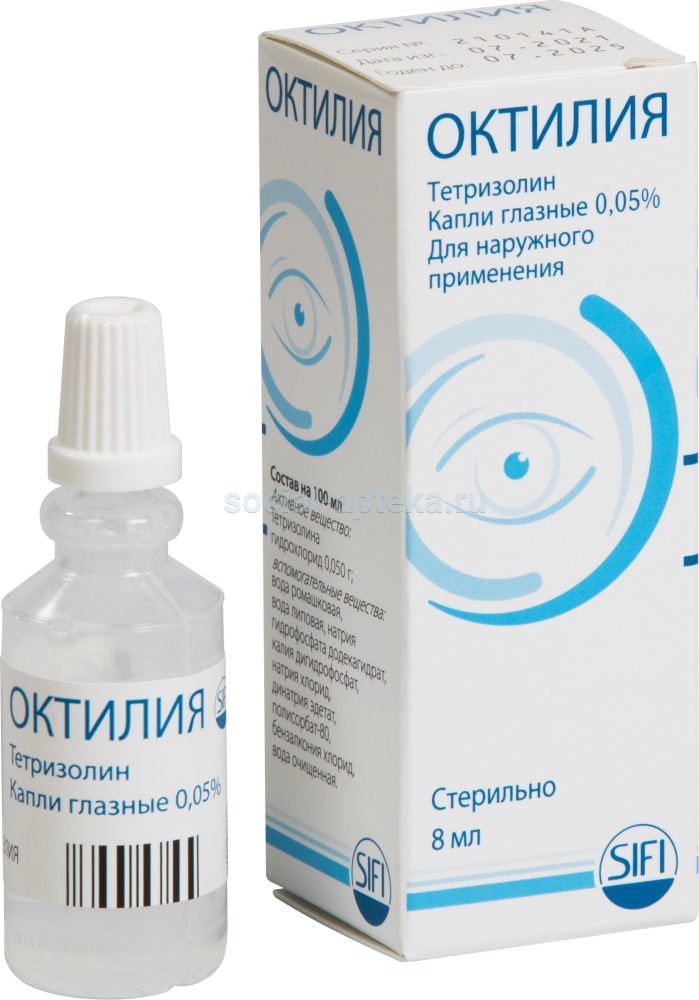 Октилия используется в комплексной терапии при лечении заболеваний глаз, сопровождающихся симптомами раздражения, вызванных аллергическими, химическими и физическими факторами (дым, пыль, сильное освещение, отражение света от снежных и водных поверхностей, от излучающих экранов мониторов).