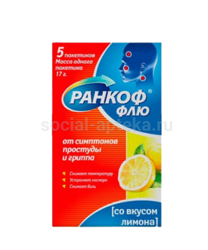 Ранкоф Флю пор д/приг р-ра д/пр внутр лимон N5 (ФармВилар) наличие в аптеках в Краснодаре