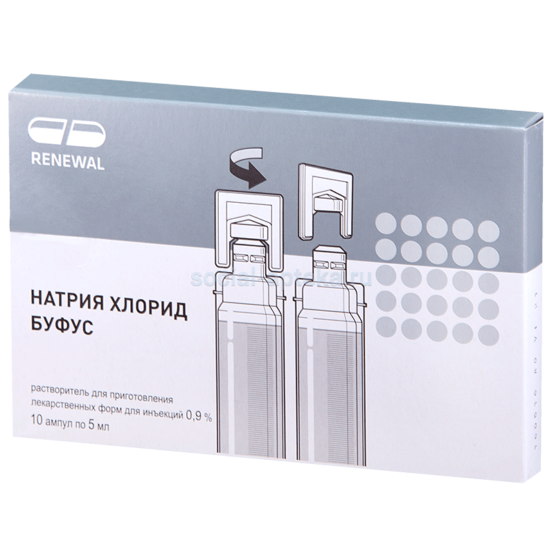 - Форма выпуска: растворитель для приготовления лекарственных форм для инъекций, 0,9 %