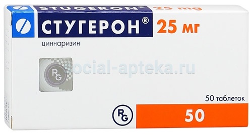 - Форма выпуска: Таблетки Стугерон белого или почти белого цвета, круглые, плоские, с фаской, практически без запаха, с гравировкой "STUGERON" на одной стороне и с риской для разлома - на другой.