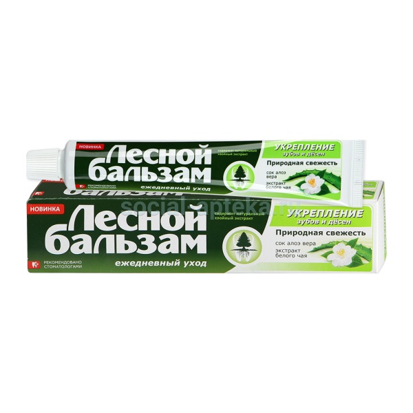 Формула с соком алоэ-вера и экстрактом белого чая содержит витамины и антиоксиданты, полезные для зубов и десен, обеспечивает длительную свежесть дыхания и укрепляет ослабленные десны* *Эффективность зубной пасты Лесной бальзам подтверждена клиническими исследованиями ГБОУ ВПО «УГМУ Минздрава России», 2014