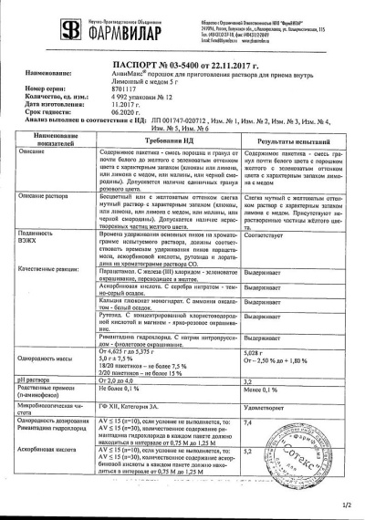 парацетамол - 360 мг, аскорбиновая кислота - 300 мг, кальция глюконата моногидрат - 100 мг, римантадина гидрохлорид - 50 мг, рутозида тригидрат (в пересчете на рутозид) - 20 мг, лоратадин - 3 мг; вспомогательные вещества: аспартам - 30 мг, гипромеллоза - 10 мг, кремния диоксид коллоидный - 20 мг, лактозы моногидрат - 4086 мг, ароматизатор пищевой (черная смородина) - 21 мг