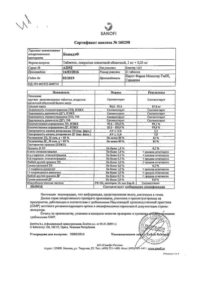 Бонадэ - низкодозированный монофазный пероральный комбинированный эстроген-гестагенный контрацептивный препарат. Действие препарата Бонадэ основано на совместном действии различных факторов, наиболее важным из которых является подавление овуляции и повышение вязкости секрета шейки матки.Гестагенный компонент препарата Бонадэ, диеногест, является производным нортестостерона и обладает антиандрогенным действием. Диеногест также оказывает благоприятное действие на липидный профиль, повышая содержание ЛПВП.У женщин, принимающих комбинированные пероральные контрацептивы (КПК), цикл становится более регулярным, реже наблюдаются болезненные менструации, уменьшается интенсивность и продолжительность кровотечения.ФармакокинетикаДиеногестВсасываниеПосле приема внутрь диеногест быстро и почти полностью всасывается. Cmax в плазме крови (51 нг/мл) достигается через 2.4±1.4 ч после приема препарата. Биодоступность в комбинации с этинилэстрадиолом - около 96%.РаспределениеДиеногест связывается с сывороточным альбумином (90%) и не связывается со специфическими транспортными белками - глобулином, связывающим половые гормоны (ГСПГ), и кортикостероид-связывающим глобулином (КСГ). Какое-либо влияние на процессы физиологического транспорта эндогенных стероидов маловероятно. Индуцированное этинилэстрадиолом повышение концентрации ГСПГ не оказывает влияния на связывание диеногеста с сывороточными белками.На фармакокинетику диеногеста концентрация ГСПГ не влияет. После приема ежедневной дозы концентрация препарата в плазме крови увеличивается приблизительно в 1-5 раз, а Css достигается примерно через 4 дня.МетаболизмДиеногест метаболизируется преимущественно путем гидроксилирования, но также и путем гидрогенизации, конъюгирования и ароматизации с образованием неактивных метаболитов.ВыведениеОбщий клиренс после однократного приема составляет 3.6 л/ч.Т1/2 диеногеста составляет 8.5-10.8 ч. Незначительное количество диеногеста выводится почками в неизмененном виде. Метаболиты выводятся почками и с желчью в соотношении 3:1. Т1/2 метаболитов составляет 14.4 ч.ЭтинилэстрадиолВсасываниеПосле приема внутрь этинилэстрадиол быстро и полностью всасывается. Cmax в плазме крови (67 нг/мл) достигается в течение 1.5-4 ч. Во время всасывания и "первого прохождения" через печень этинилэстрадиол метаболизируется, в результате чего средняя биодоступность при пероральном применении составляет 44%.РаспределениеЭтинилэстрадиол практически полностью (98%), хотя и неспецифично, связывается альбумином. Этинилэстрадиол индуцирует синтез ГСПГ. Зафиксированный Vd этинилэстрадиола составляет 2.8-8.6 л/кг.Css достигается во время второй половины лечебного цикла, когда уровни лекарственного препарата в сыворотке становятся в 2 раза больше по сравнению с отдельной дозой.МетаболизмЭтинилэстрадиол подвергается пресистемному конъюгированию как в слизистой оболочке тонкого кишечника, так и в печени. Основной путь метаболизма - ароматическое гидроксилирование, с последующим конъюгированием с глюкуроновой и/или серной кислотами.ВыведениеСкорость метаболического клиренса из плазмы крови составляет 2.3-7 мл/мин/кг. Концентрация этинилэстрадиола в плазме крови уменьшается, причем снижение носит двухфазный характер: первая фраза характеризуется Т1/2 около 1 ч, вторая - 