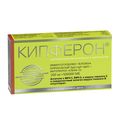 Фармакологическое действие: иммуномодулирующее, противовирусное, антихламидийное. Фармакологические свойства. Суппозитории Кипферон® представляет собой комплексную лекарственную форму, содержащую человеческий рекомбинантный интерферон-α2 и комплексный иммуноглобулиновый препарат (КИП). Интерферон-α2 является активатором врождённого и приобретённого иммунитета, обладает выраженной противовирусной активностью, усиливает защиту от вирусных, хламидийных, микоплазменных и бактериальных инфекций, оказывает иммуномодулирующий эффект в развитии иммунологических реакций, способствует росту и сохранению нормофлоры кишечника и влагалища. Биологическая активность интерферона-α2 реализуется посредством взаимодействия с рецепторным аппаратам иммунокомпетентных и других клеток, приводящим к усилению экспрессии молекул HLAI и HLAII на поверхности всех типов клеток и регуляции кооперации клеток, повышению активности естественных киллеров, а также приданию интактным клеткам устойчивости против их цитолитического действия, пролиферации CD8 Т-клеток. Повышает выработку гамма-интерферона естественными киллерами. Комплексный иммуноглобулиновый препарат КИП содержит специфические и неспецифические иммуноглобулины классов G, М, А. Сочетание антивирусных, антихламидийных, антибактериальных и антитоксических антител, принадлежащих к различным классам иммуноглобулинов, обеспечивает агглютинацию, нейтрализацию и преципитацию этиотропных патогенных агентов. В месте аппликации обеспечивает стабилизацию интерферона от секретов слизистых оболочек, нормализует местный иммунитет за счёт поступления IgA и IgM с суппозиториями (заместительный эффект), повышает активность местно образуемых цитокинов.