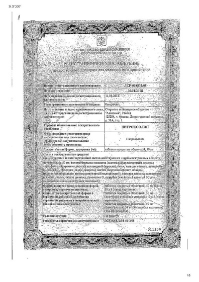 Внутрь. Нитроксолин следует принимать перед едой и запивать полным стаканом воды.