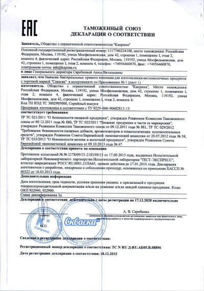 Сертификаты Закваска Скваска